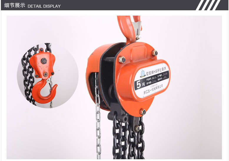 双鸽牌HS-V型手拉葫芦是中国传统名牌产品,采用国际标准生产,具有六大特点: